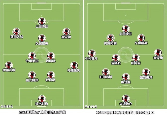 经历了亚洲杯的失利,森保一在36强赛阶段进行了幅度很大的练兵。铃木彩艳、板仓滉、远藤航、守田英正和上田绮世组成的中轴线比较稳定,森保一会根据需要改变两翼的配置,达到不同的战术目标。